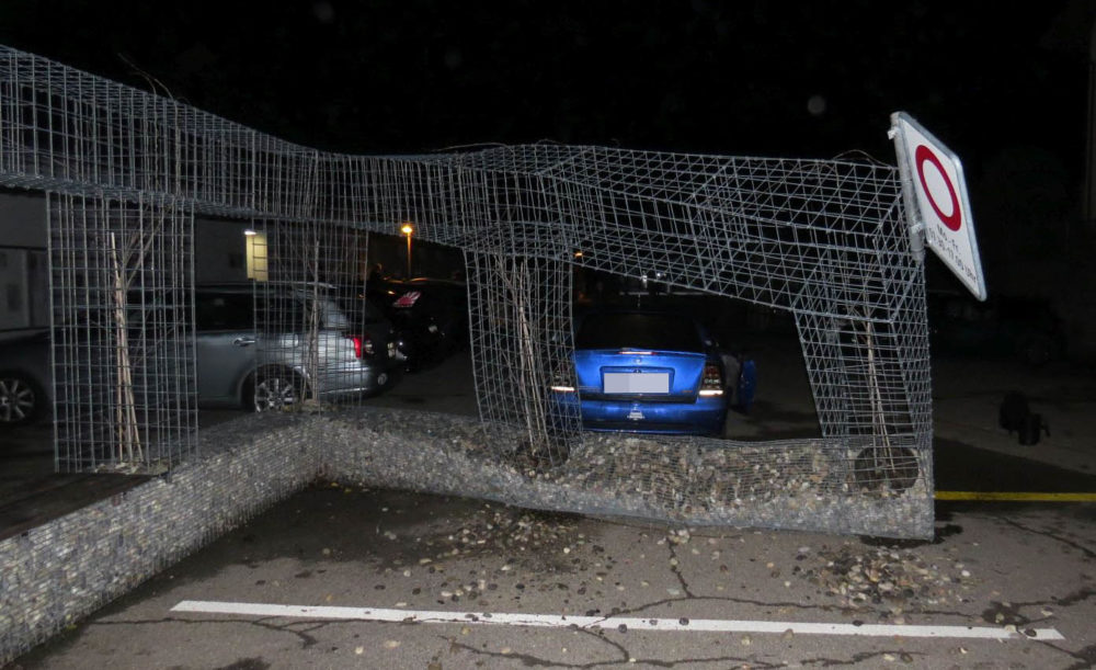 Gestern kollidierte ein Fahrzeug mit einem Basketballkorb und einem Sichtschutz. Der 18-Jährige war alkoholisiert. Eine Person wurde leicht verletzt.